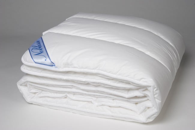 Dekbed Noblesse 4-seizoenen Dit Dekbed Noblesse 4-seizoenen is een zalig en licht synthetisch dekbed. Het dekbed is prettig licht in gewicht, goed isolerend en reuk vrij. Het dekbed heeft een gesiliconiseerde polyester holle vezel als vulling en een 100% katoenen tijk. Deze katoenen tijk zorgt voor een snelle opname van het transpiratievocht waarna de vulling zijn werk doet. Het dekbed is volledig anti-allergisch en anti-huisstofmijt. Dit dekbed kan gewassen worden tot op 60 graden. Door te wassen op 60 graden wordt de huismijt gedood. Wel zo hygiënisch, toch?! 4-Seizoenen Een 4-seizoenen dekbed bestaat uit 2 delen. Je hebt een dunner zomer deel dat heerlijk is voor de zomer en een dikker deel voor de herfst of het najaar. Samen maak je er een heerlijk warm winterdekbed van. Op een rij: – Licht in gewicht – Gesiliconiseerde polyesterholle vezel, 200 en 300 gr/m2 – 4-Seizoenen dekbed, gekoppeld met drukknopen – Tijk is 100% katoen – Machine-wasbaar tot op 60 graden –